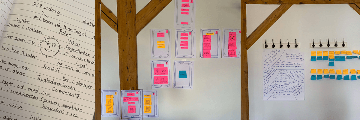 Foto: Ovenfor ses nogle af trinene fra den kreative proces på UX kurset